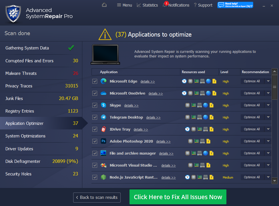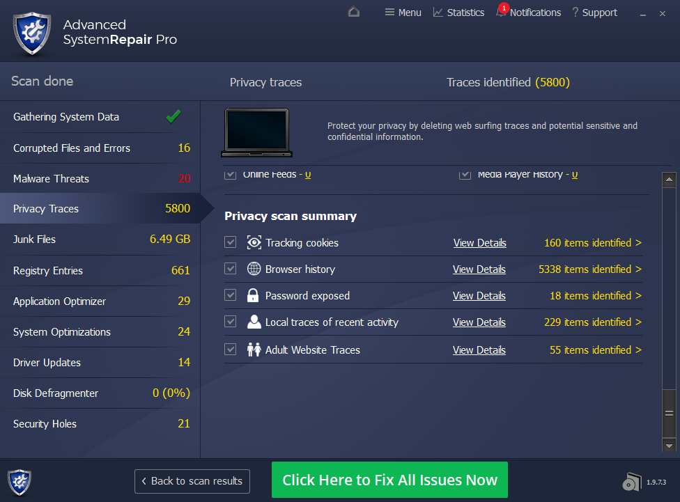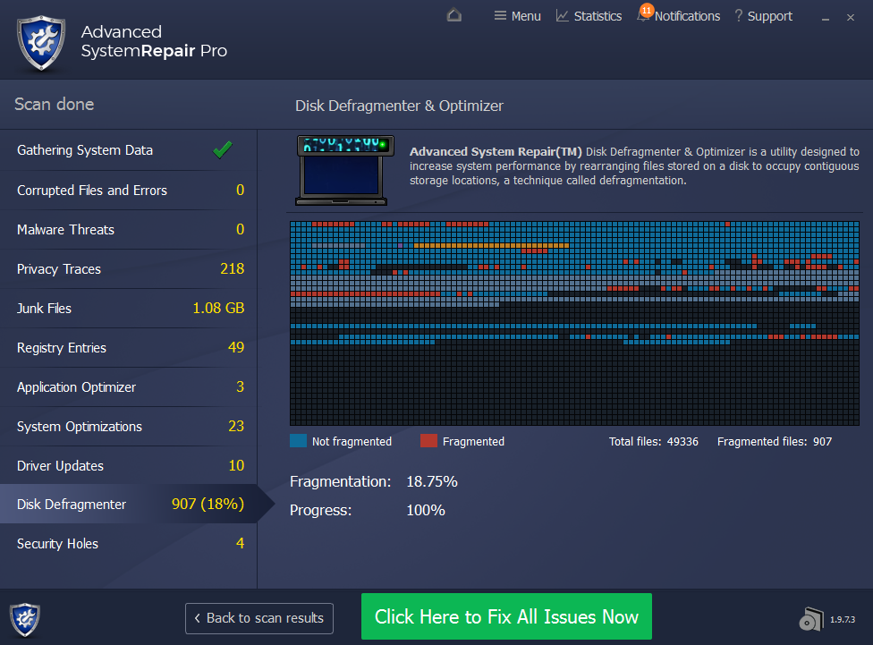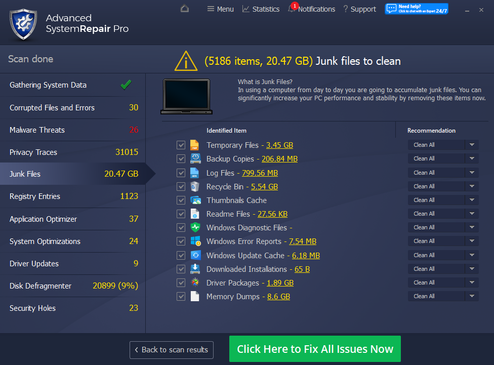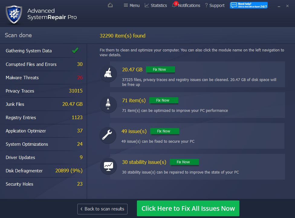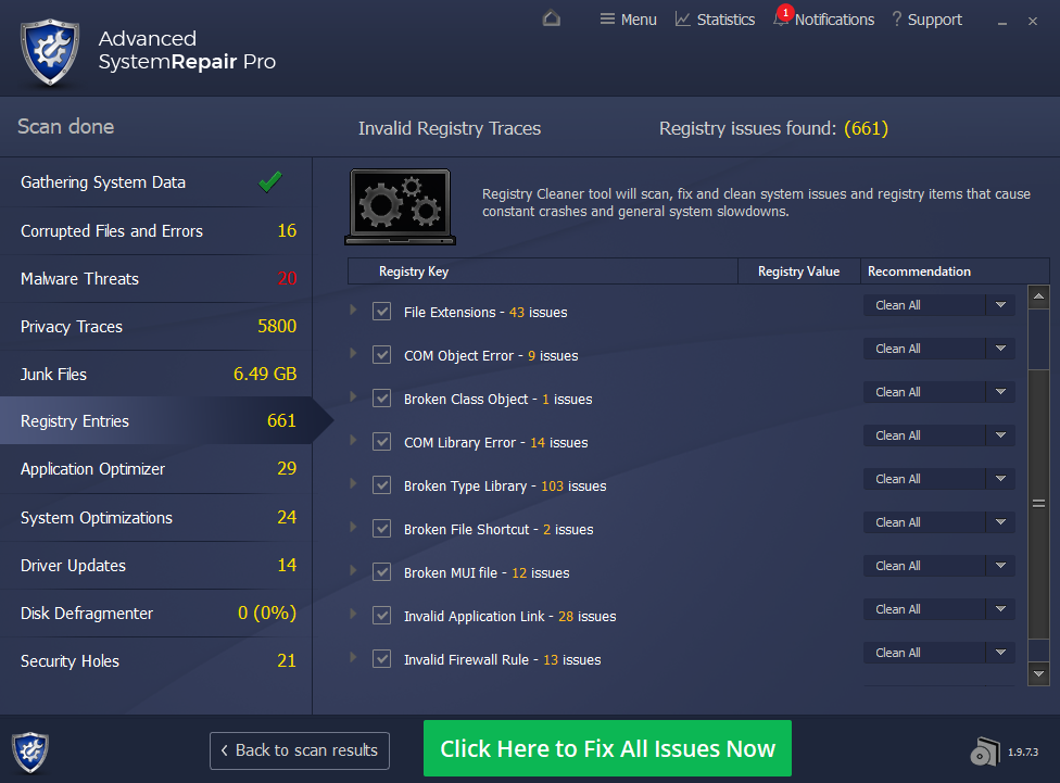 Advanced System Repair utilizes multiple tools all in one to give