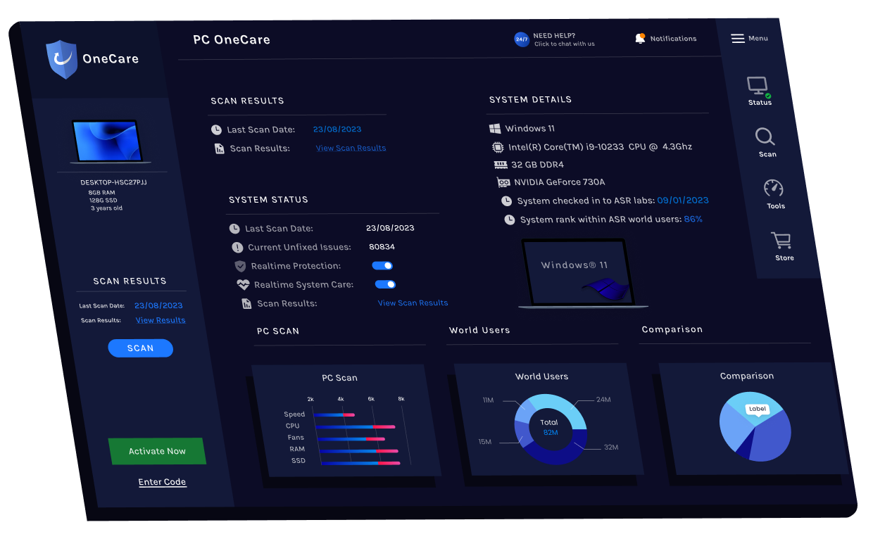 PC 1Care provides powerful real-time protection against cyber threats, malware, and hackers. It constantly monitors your system and network activity to detect and block suspicious behavior before damage can occur—keeping your digital world safe 24/7.